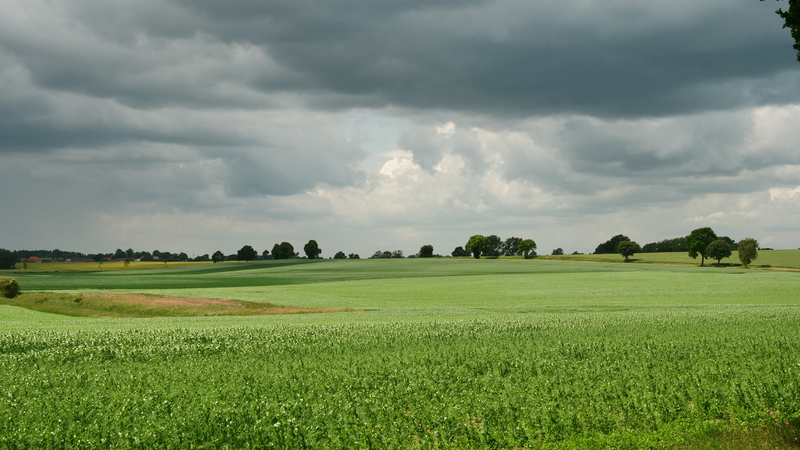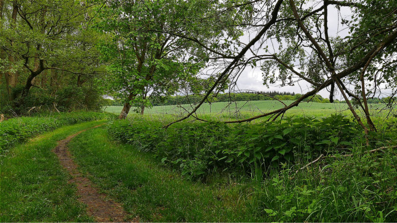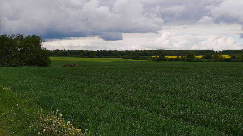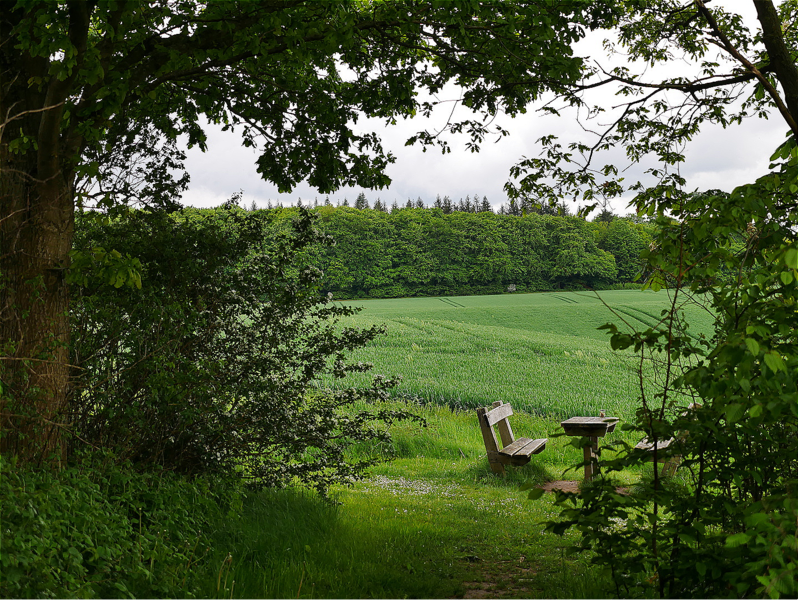 Wählt man den östlichen Pfad, kommt man bald aus dem Wald heraus und nun in ein offenes, landwirtschaftlich geprägtes Gebiet. Auf leicht hügeligen Wegen und entlang eines langen Knicks und der Äcker bietet sich ein weiter Blick in Richtung Ratzeburg. Der nun folgende Abschnitt „zieht“ sich ein wenig, führt an Kulpin vorbei und wird in seinem Eindruck sicherlich maßgeblich durch die vom Landwirt gerade eingebrachten Feldfrüchte geprägt. Durch die Felder geht es bis zur Kastanienallee, auf die in südwestliche Richtung eingebogen wird, d. h. nach rechts.