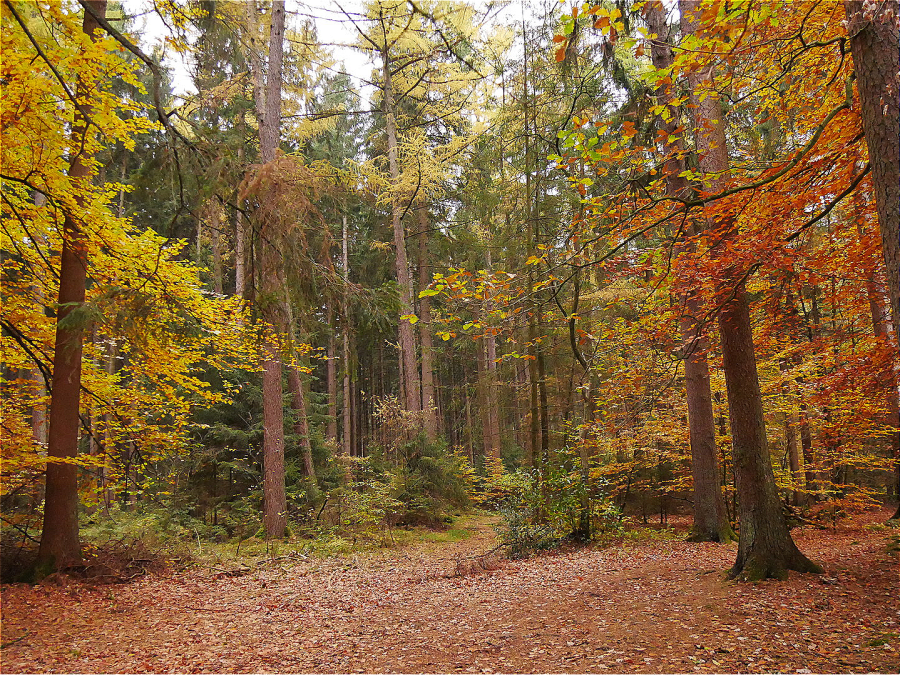 Wir laufen durch einen typischen norddeutschen Rotbuchenwald: den Hevenbruch in der Nähe von Mölln. Dieser Wald wird seit langer Zeit sich selbst überlassen, womit die Chance besteht, eine Wald- entwicklung zu betrachten, die vom Menschen weitgehend unbeeinflusst ist.